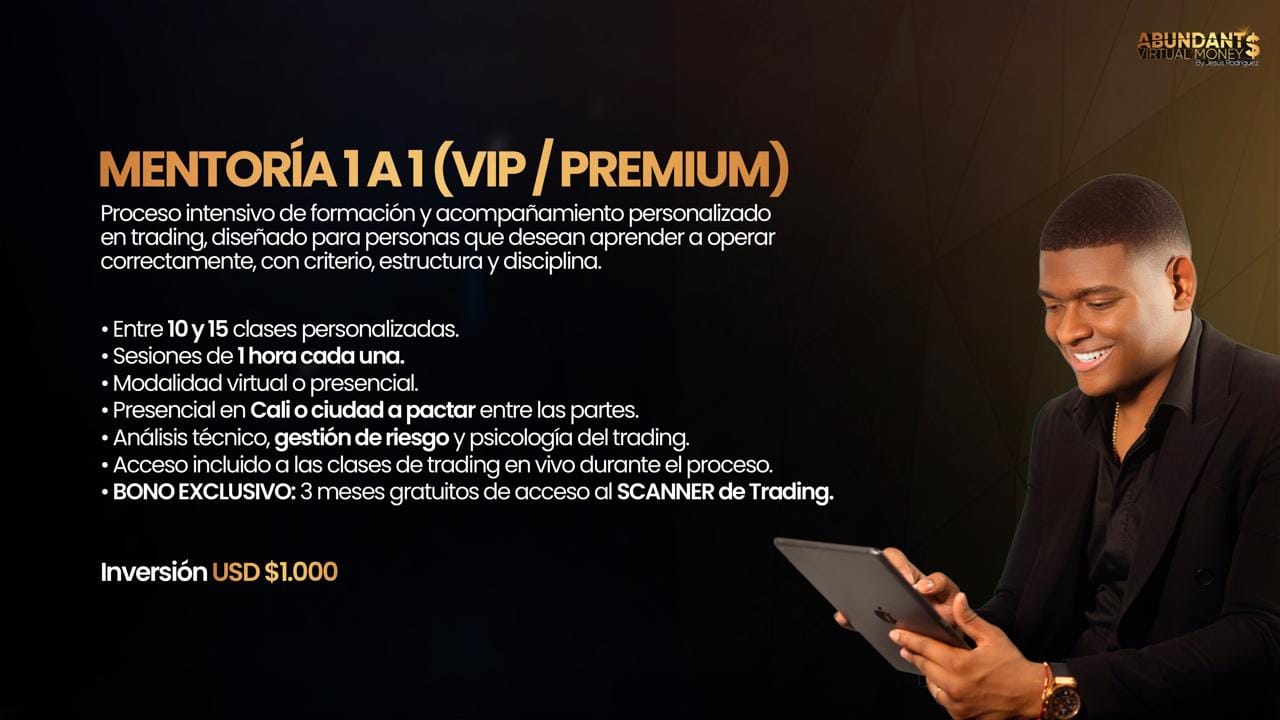 Accede a mentorías, sesiones en vivo y formación práctica enfocada en Forex, Índices y Criptomonedas, diseñada para que entiendas cómo operar el mercado con estructura y disciplina.