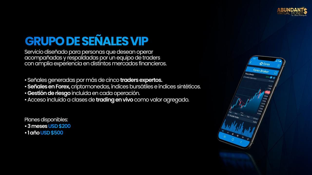 Tienes mentorías, sesiones en vivo y guía directa para mejorar tu operativa y tu mentalidad.
